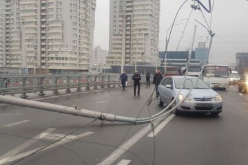 На Хрещатику дорожній знак впав на автомобілі (відео)